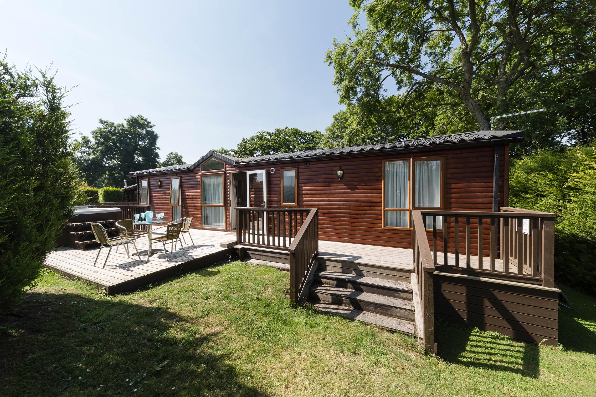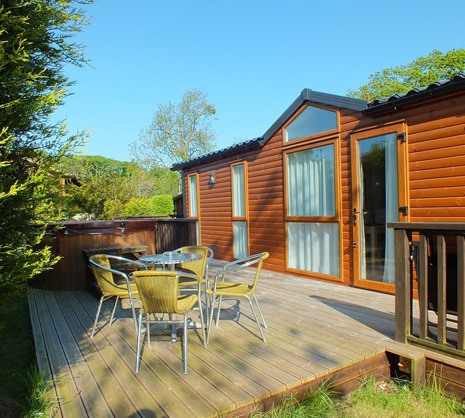 The Lodge comes complete with Jacuzzi/hot tub, and quality garden furniture on timber decking.