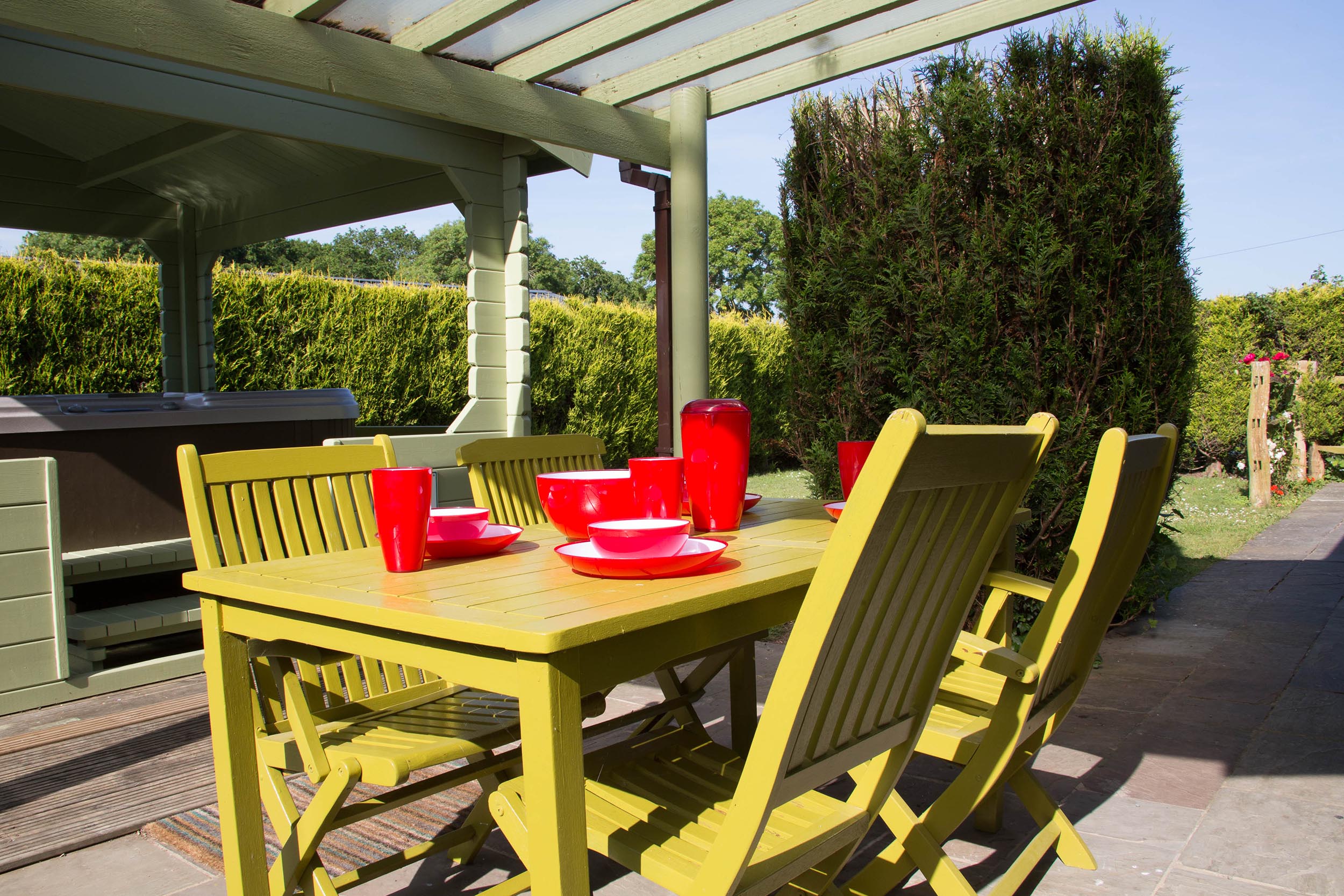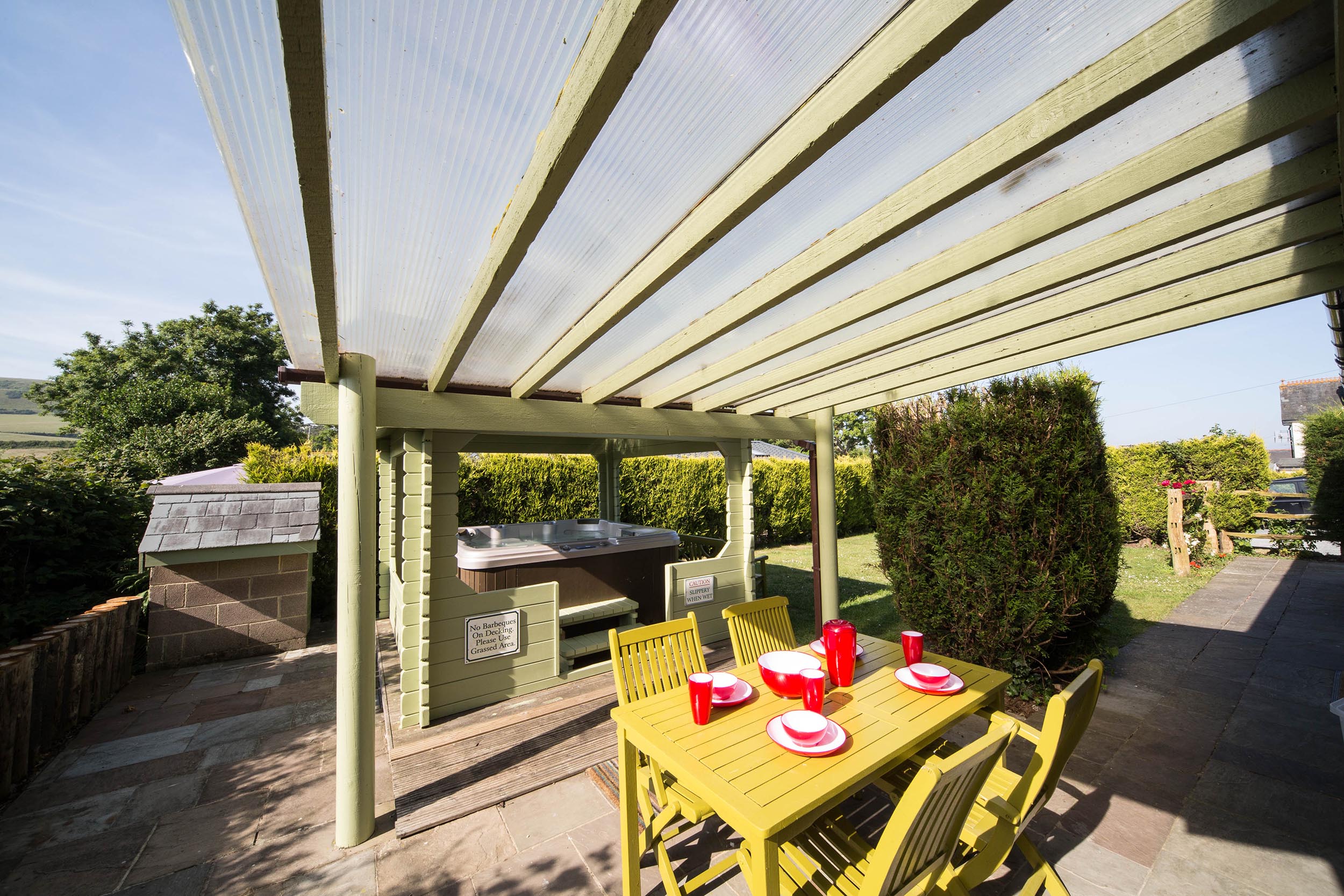 Overlooking the countryside in a private plot of lawn, trees and shrubbery, Rose Cottage offers a relaxing retreat with its own garden space, veranda and hot tub overlooking the Purbeck hills.
