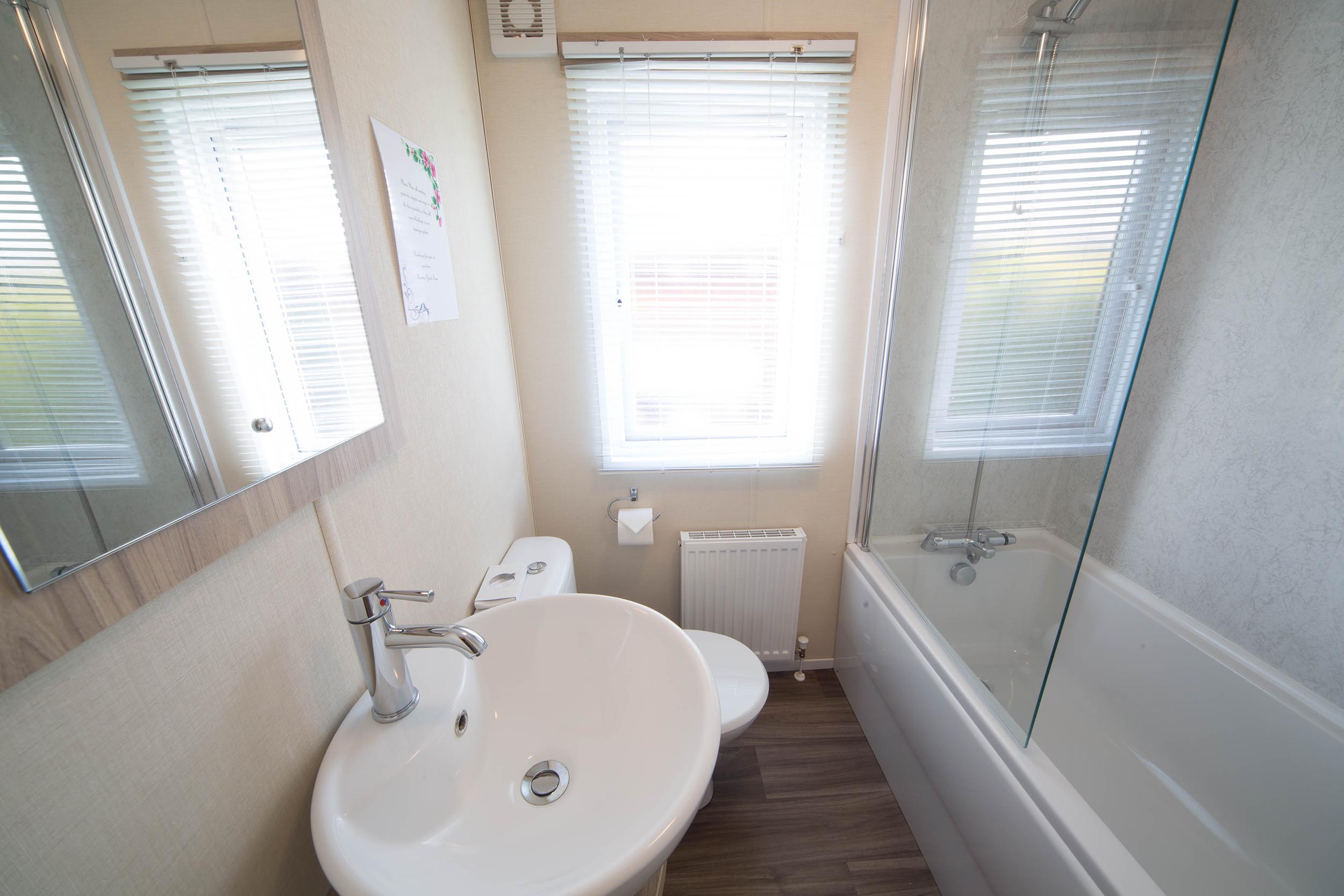 Bath, shower, hand basin and wc.